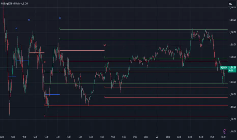 As data is received, the indicators adjusts it's calculation for the next action levels. Once the calculation is complete, a horizontal line is drawn as a decision price level. ATR levels are wrapped around the decision price level for additional reaction levels. As price approaches these levels, be cautious with your entries and exits while looking for price reactions. The calculated horizontal line can represent both support and resistance.