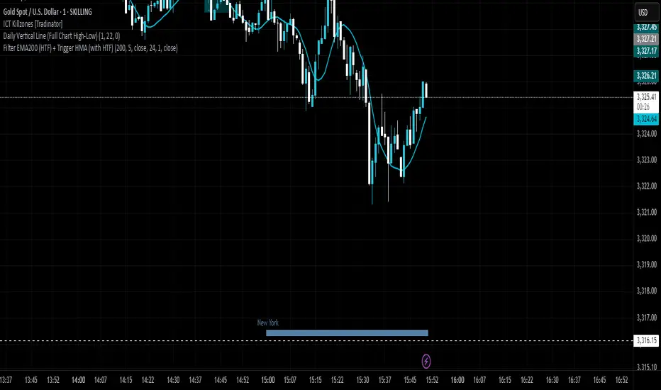 Trigger: Hull Moving Average (HMA) with adjustable length and selectable source timeframe (default HMA24 on 1-minute). It provides faster entries and exits.