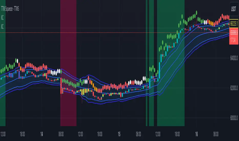 This adaptation synergizes the collective advancements of Carter, Lazybear, and Makit0, focusing specifically on refining squeeze conditions to align with the official TTM Squeeze Pro's color coding. Unlike its predecessors, the TTM Squeeze Pro is integrated directly over the price bars, enhancing visibility and immediate interpretation.