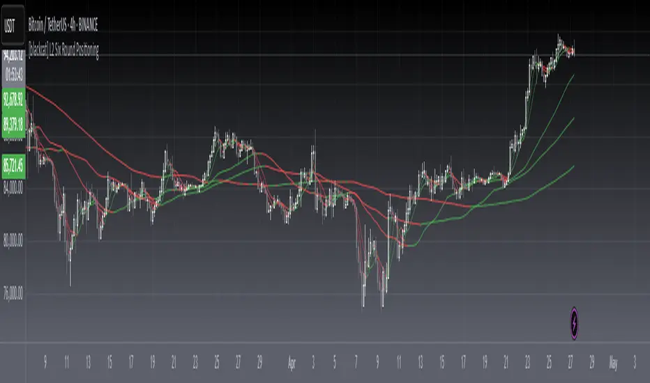 OVERVIEWThe L2 Six Round Positioning indicator uses multiple moving averages to analyze market trends and identify potential buying and selling opportunities. It employs a unique color-coding system to visually represent the direction of each moving average.