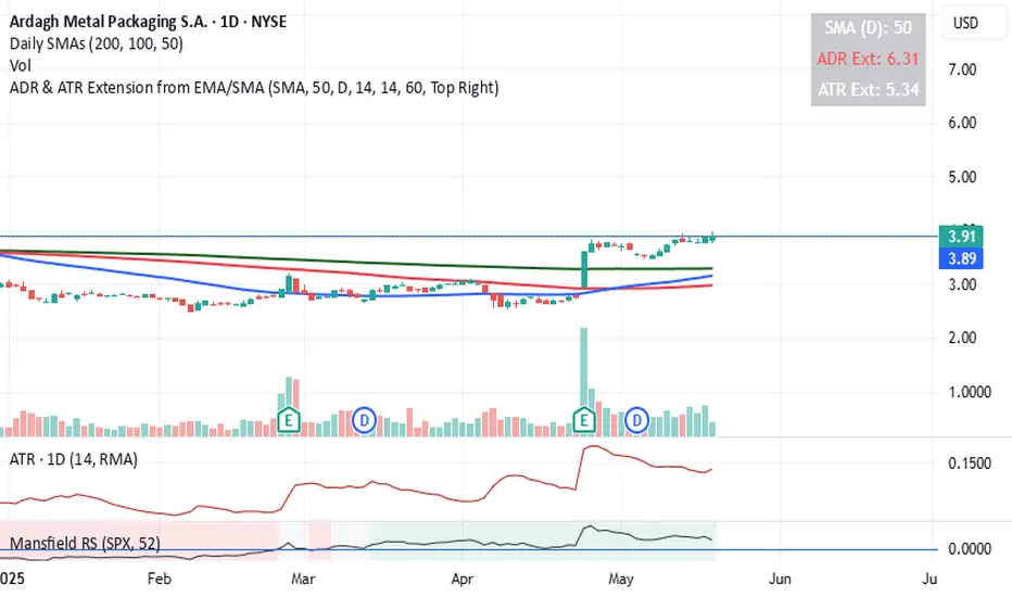 This indicator helps identify how extended the current price is from a chosen Exponential Moving Average (EMA) in terms of both Average Daily Range (ADR) and Average True Range (ATR).