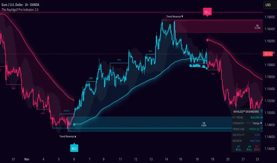 RayAlgo™ Pro 2.0 is not just a signal generator; it is a comprehensive market structure engine designed to align retail traders with institutional footprints. By combining Smart Money Concepts (SMC) with advanced volatility calculations, this toolkit filters out noise to reveal the true narrative of the chart.