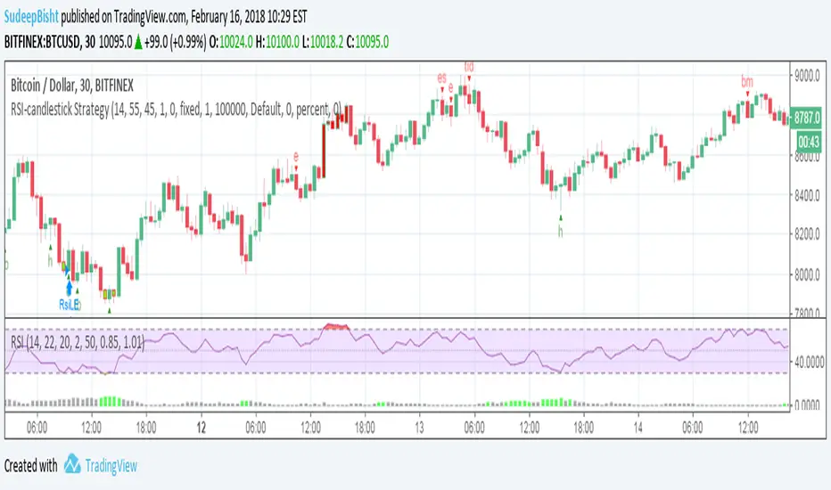 The script follows a modified rsi strategy and orders are placed if a candlestick pattern is identified in the current or previous candle.