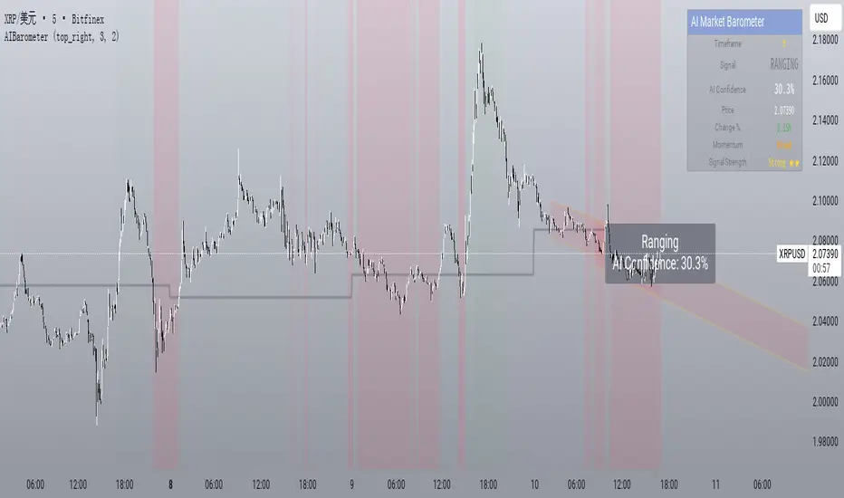 AI Market Barometer Pro is an advanced multi-timeframe trading system that combines artificial intelligence algorithms with proprietary technical analysis to deliver high-confidence trading signals. This professional-grade indicator analyzes market conditions across multiple timeframes simultaneously, providing traders with clear directional bias and signal strength ratings.