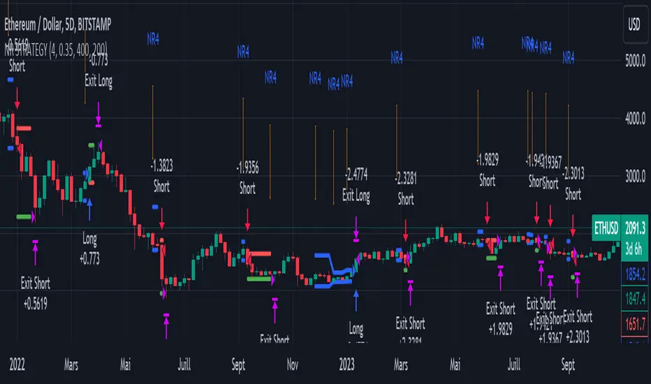 ETHUSD while limiting the drawdown. This strategy is the most optimal with an NR4 and a SL of 35% of the reference range size in 5D timeframe.