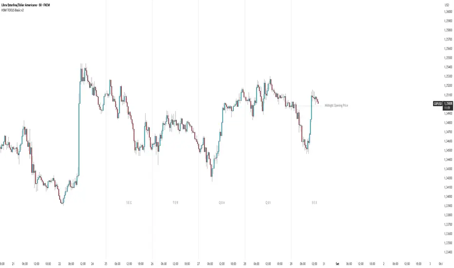 It automatically separates the days of the week on your chart and plots the midnight opening price (00:00), which acts as a daily fair value level. This level can be used as support or resistance for trade entries.