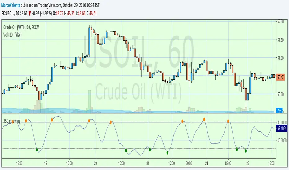 Rsi swing trade using an MA of RSI at 3 period. Signals on crossing 80 and 20.