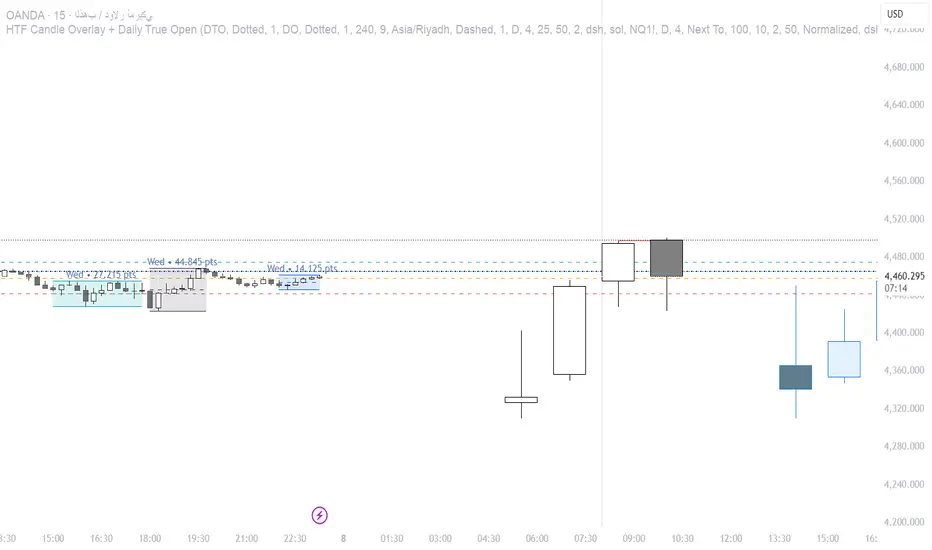 HTF candles overlay with Daily True Open and session-based levels for price action traders.═══ HTF CANDLES ═══