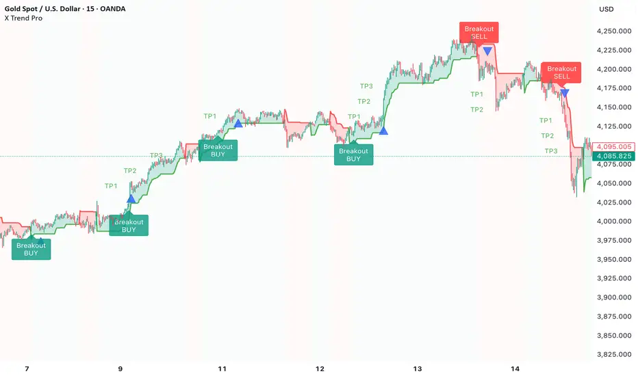 X Trend Pro is a price-action–based study designed to help users observe potential trend shifts and breakout-related conditions on the chart.