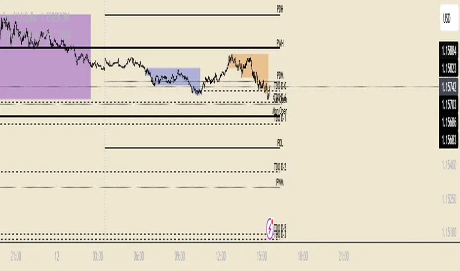 - **Previous Week Mid (PWM)** - Weekly equilibrium for higher timeframe bias
