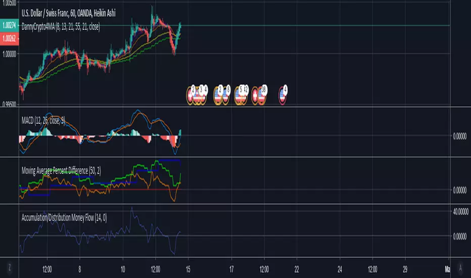 I use this with a built-in MACD, the Quad EMA, and the Accumulation Distribution Money Flow to determine trade entries and trend direction for manual trading.