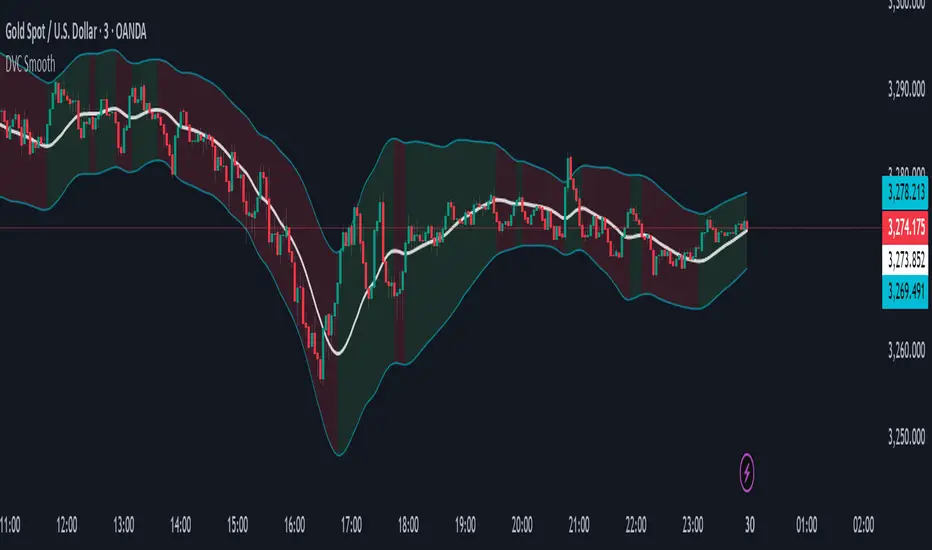 Advanced Smoothing Layers: This version includes dedicated smoothing for both the volatility components (ATR and StDev) and the logic that switches between regimes. This ensures the channel expands, contracts, and adapts in a very fluid manner, eliminating sudden jumps and reducing market noise.