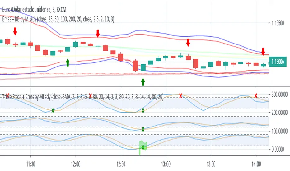 This strategy is based on waiting for the point of overbought or oversold that exceeds the bolinger bands, if you are rejecting one of the emas in favor of the trend is more effective, since additional confirmations of the gut in stochastics are expected when indicating The flag, used at all times, is very useful for the options market and for scalping