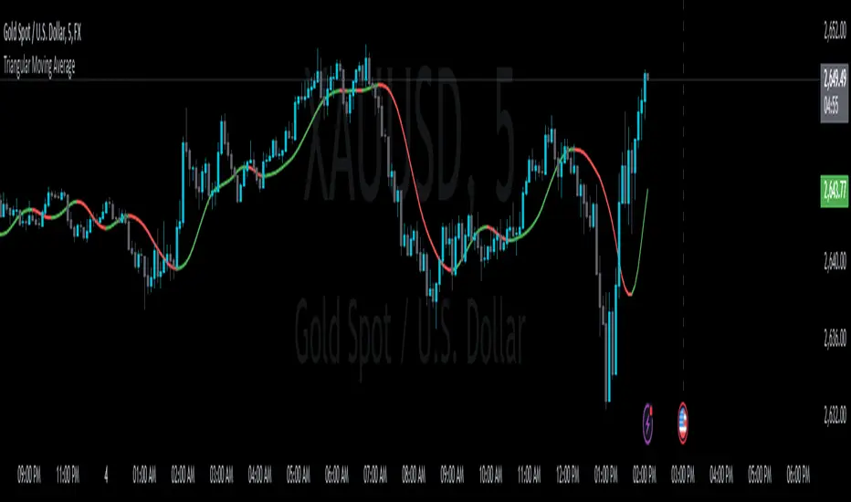 The Triangular Moving Average (TMA) indicator is a versatile tool designed for traders seeking a smoother trend-following experience. By applying a double-smoothing technique, the TMA reduces market noise and highlights significant price trends, making it an ideal choice for identifying direction and potential reversals.