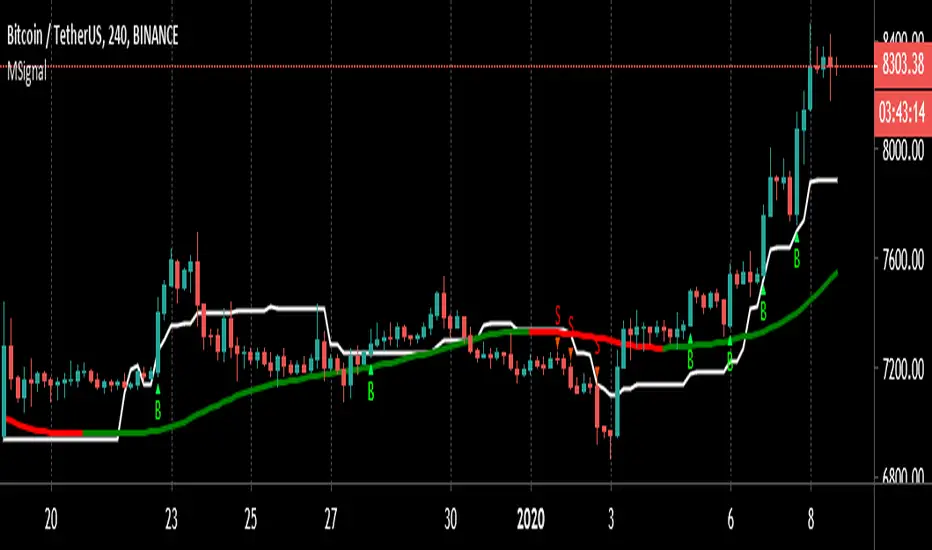 Once the MSignal indicator has spotted a continuation pattern, it clearly displays a Buy or Sell signal on your chart, showing you exactly where possible entry to continue with the trend.
