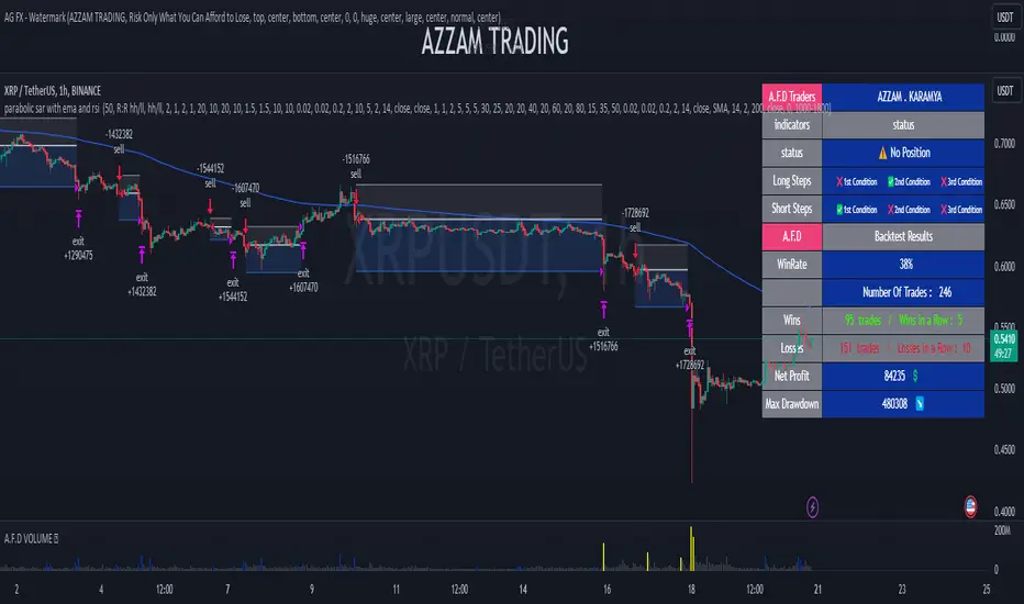 for a short signal to be valid , the price must be below 200 E M A , with NEW SELL signal from parabolic saarr ,if ,R S I BELOW 50 line