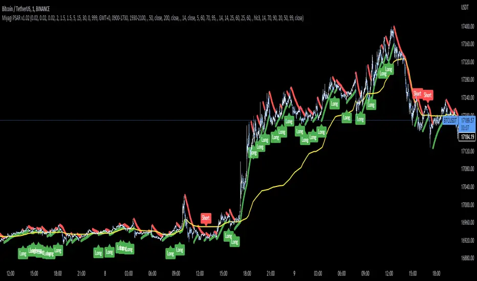 The Miyagi PSAR is built off PSAR by Everget - tradingview.com/script/MddD4giy-Parabolic-SAR/.