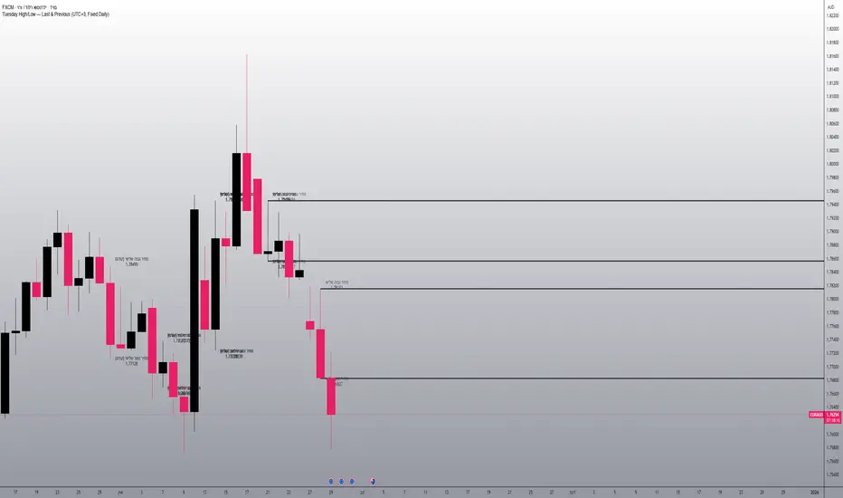 This indicator automatically marks the high and low prices of Tuesdays on your chart — for both the most recent Tuesday and the one before it.