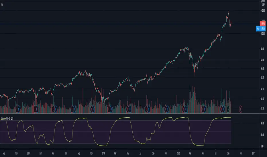 This indicator displays the rsi of the inflow and outflow of money into a stock or security