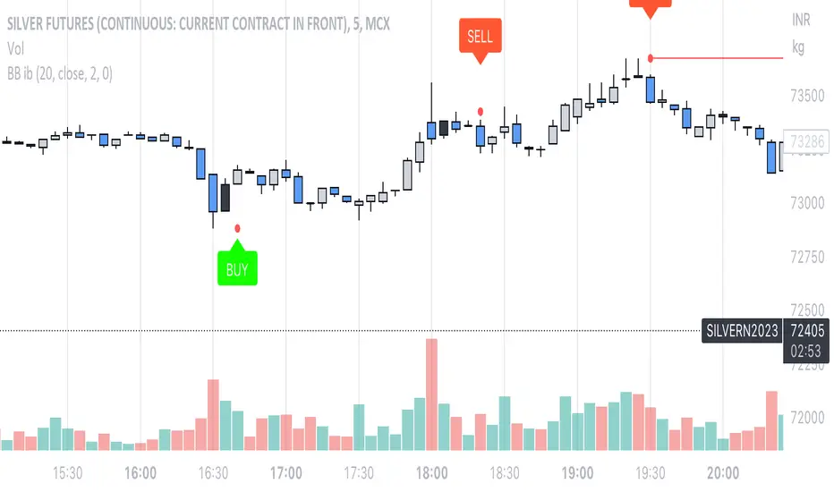 the indicator name is Bollinger Band inside bar because it uses Bollinger Band and inside bar to take counter-trend positions in the market. whenever this pattern is formed then it can be used to take an entry into the market. the candlestick pattern recognizes 3 candle candlestick. first the mother bar i.e. the medium to the big size candle that intersects with the upper and the lower levels of the Bollinger band. the second candle should be an inside bar i.e. the high and low of the current bar should be less than the previous bar. finally, the last bar who's low should be less than the mother bar in case of the mother bar is at upper levels and if the mother bar is at lower levels then the candle's high should be more than the mother bar. the stop-loss should be high and low of the mother bar respectively. entry should be taken as soon as the low and high of the mother bar is taken out respectively. target should be 1:1 or 20 sma or lower Bollinger band in case the entry is taken from the top. works best if there is a trend and the market takes a pullback and this pattern is formed.