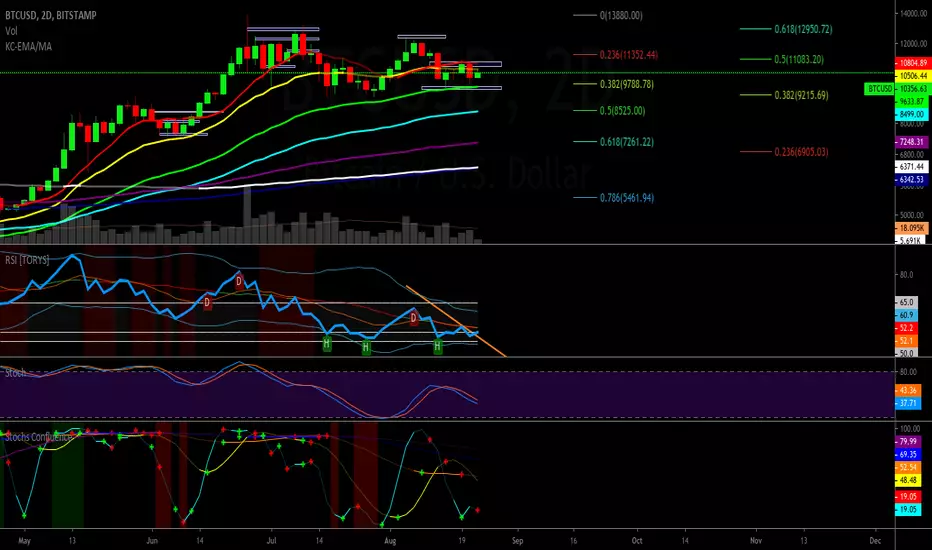 Shows 5 stochastic plots with moving average cross marks for different time-frames. Each plot is based on the current interval times the configurable multiplier.