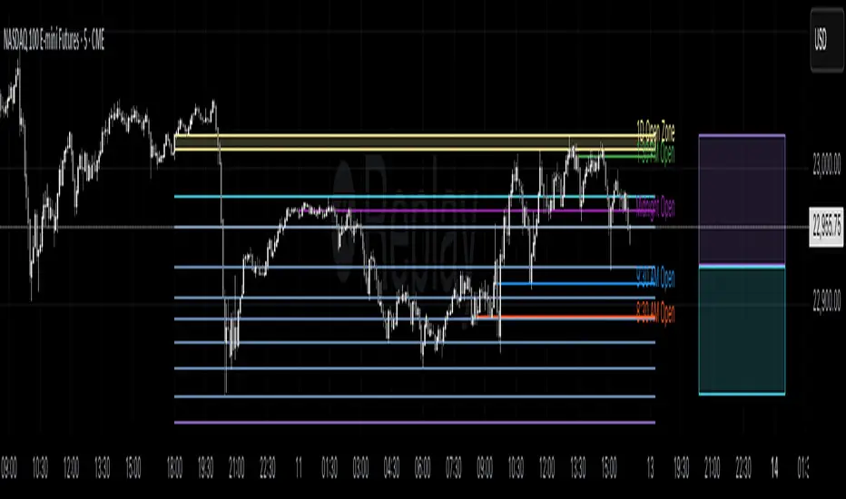- Intraday Trading: Use session open lines and open zones to trade key market hours.