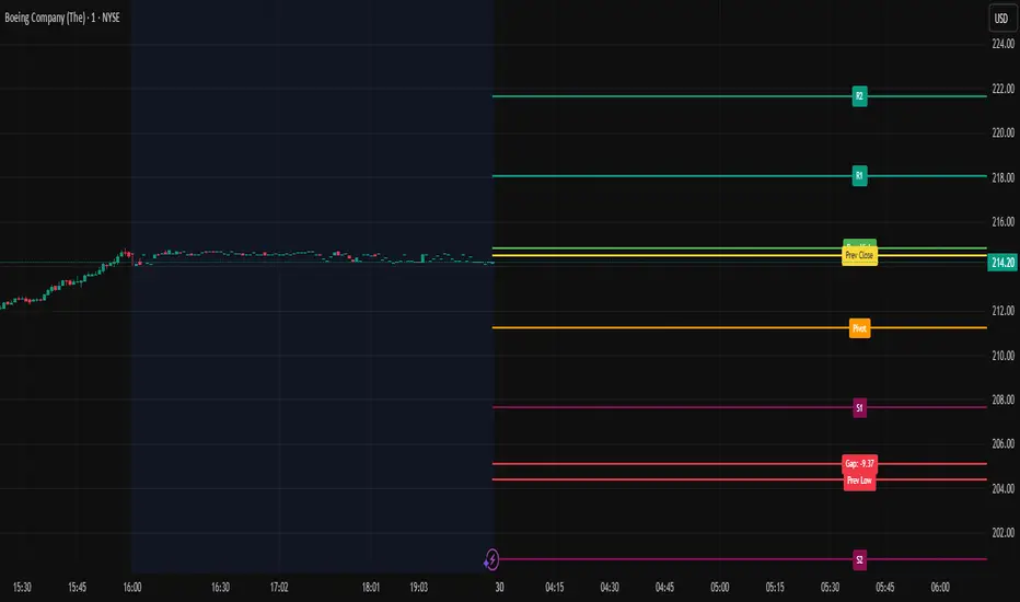 Next Day Key Levels [Auto-Pivot Suite] RobustAutomatically plot all key levels (Floor Pivots) for the next U.S. trading day — now with gap up/gap down detection at the open.