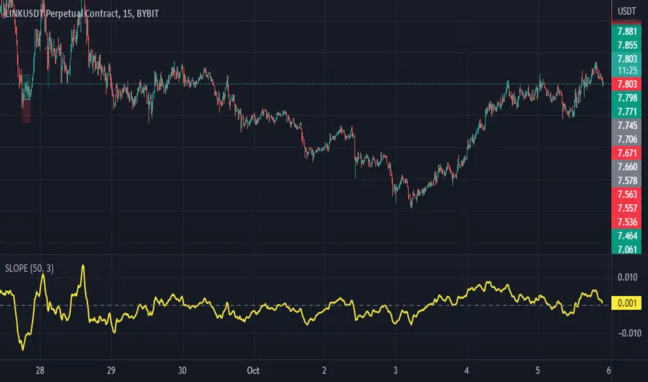 We create our own indicator to calculate the slope of a 50 period EMA over the last 3 candles.