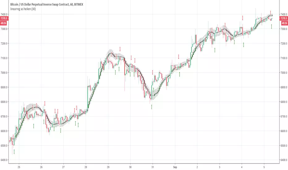 Linear regression as similar to heiken candles, arrow up (green) or down (red) show the trends