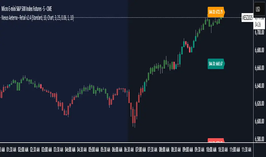 Nexus Aeterna is an advanced multi-mode trading framework designed for precision signal generation, risk management, and visual clarity. Built for both retail and professional traders, it integrates adaptive moving averages, dynamic stop-loss management, and contextual volume analysis to enhance trade timing and trend confirmation.