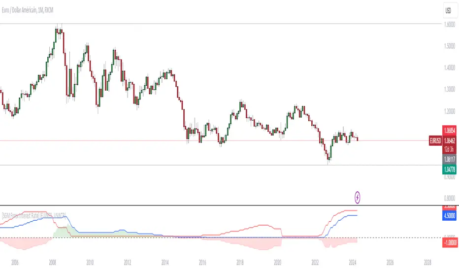 Through an analysis of the interest rates of selected currencies, this indicator calculates the difference between these rates to provide an indication of the relative strength between the two currencies. This relative strength is graphically represented as an area with a specific color for better visualization.