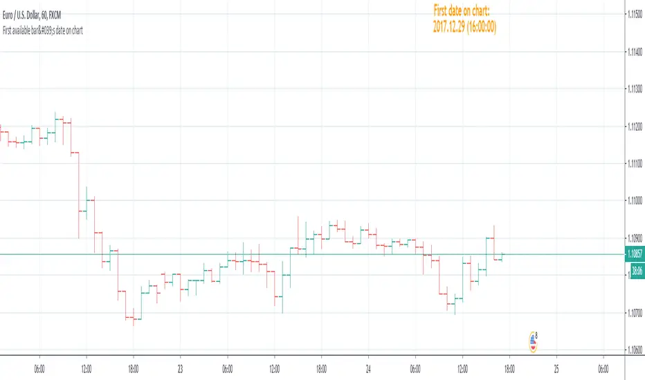 When you attach the script on chart, it will show the first available (loaded) bar's date (on right top side of chart).