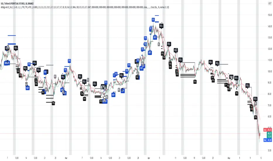 AltAlgo is a great tool that helps you find the best possible entries for your trades. It's not a limited strategy for only some timeframe periods or assets. You can use it on Crypto, Forex, Stocks, Indices, and basically any chart that is available on TradingView. It is suitable for short-term scalping, mid-term and long-term swing trading, both spot and futures.