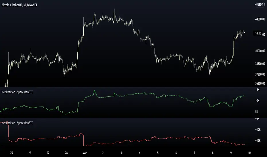 The indicator can be used to spot large positions occuring, e.g. large long positions, and how they can influence the market such as long positions opening towards a swing high can be seen, price moving away from said positions can lead to longs being squeezed when moving away.