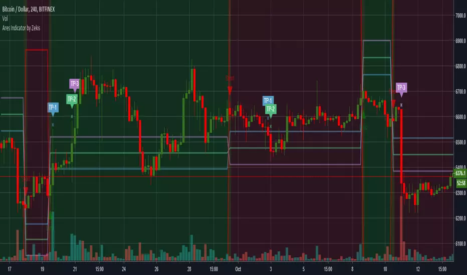 There are 3 Take Profits and a Stop Loss, marked with lines for a better view and with symbols when it get there.