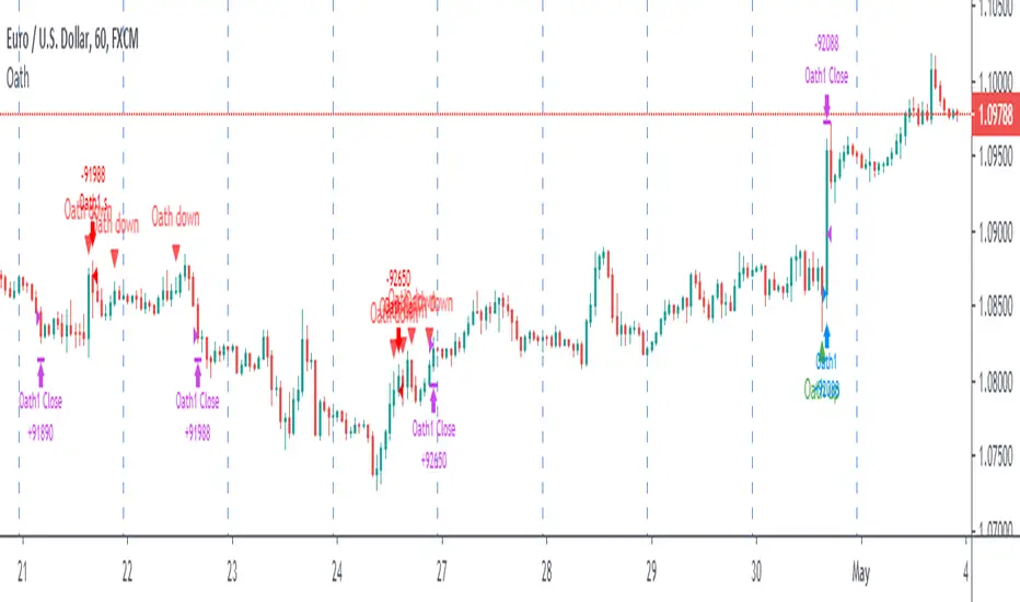 Oath consists of 21 and 55 EMA , Commodity Channel Index and Supertrend indicator. It confirms a trend and gives you a signal on a pullback. Original creation worked on 1h EURUSD chart.