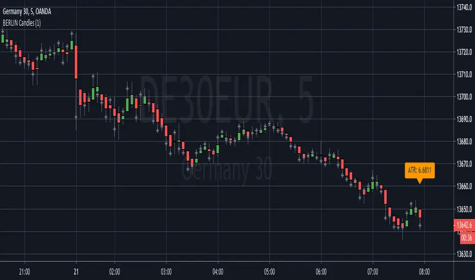 One problem still persists though. The actual current price data is lost. However, the BERLIN Candles have solved this by adding a fifth part to the candles. The close of the underlying japanese candlesticks are indicated with a plus-sign. This way, actual price data is never lost, while keeping all of the other benefits of this type of candles.