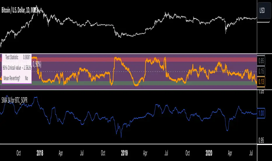 Provides a smoothing value for BTC SOPR to provide a oscillator type style mean reversion indicator