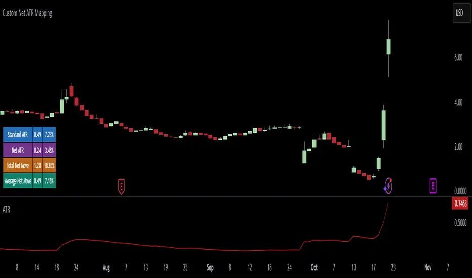 Net ATR – the average open-to-close move, revealing how much price tends to travel directionally within each bar.