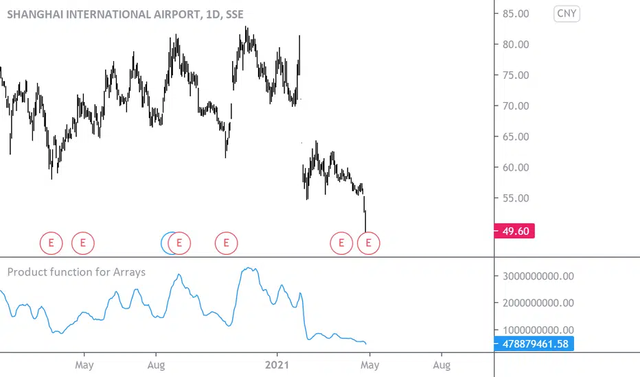 TradingView recently released new functions for arrays, like array.median and more, but the "PRODUCT" function was still missing, so I created it. I've no doubt that array.product() will soon be proposed by the platform, but for the time being, one can use mine.