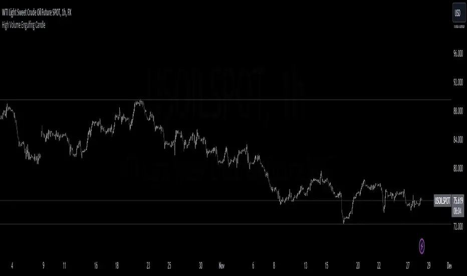 Overall, the "High Volume Engulfing Candle" indicator combines the visual recognition of candlestick patterns with volume analysis to provide traders with potential signals for trend reversals or significant price moves in the market. Traders can use these signals as part of their technical analysis and trading strategies.