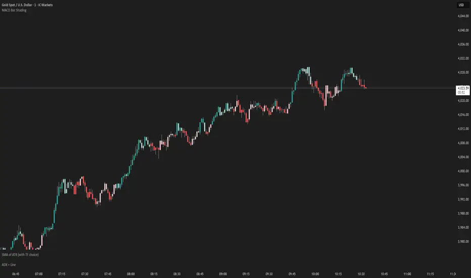 Colours candlesticks based on macd histogram, simple but useful visual!