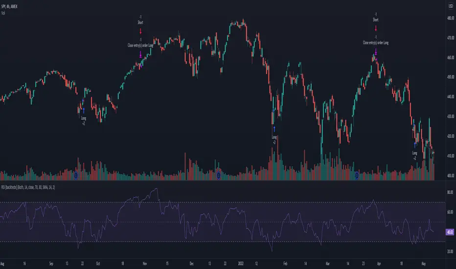 Simple RSI strategy that enters long when crossing above 30, and enters short when crossing under 70.