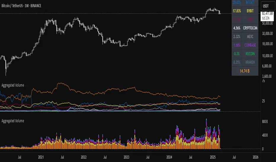The indicator presents a comprehensive approach to Aggregated Volume Data . Works on almost all CRYPTO Tickers!