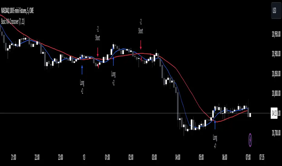 Visual Signals: The strategy is a simple moving average crossover using a 2 period MA to simulate a lot of frequent trades.