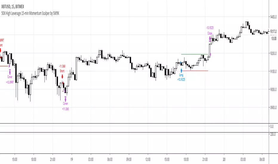 Use this strategy for 15-min Bitmex scalping on XBT contracts only. Recommend 100k contract size or less; backtested with 100k contracts.