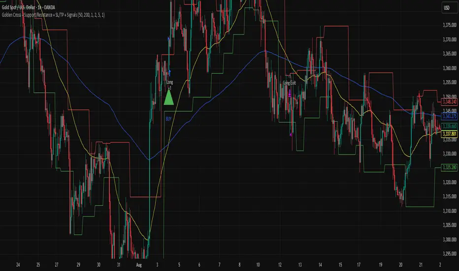 Golden Cross + Support/Resistance + SL/TP + Signals