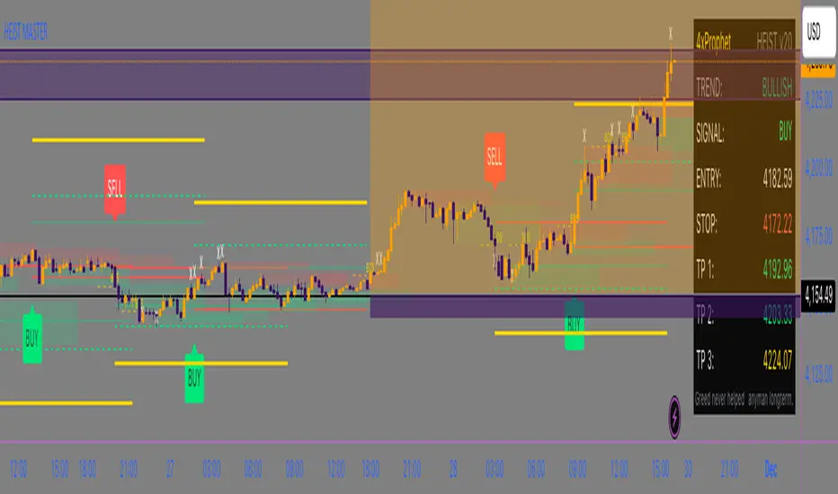 The Heist Prophecy Master Suite is an institutional-grade execution interface designed to remove the guesswork from manual trading. Originally developed for private fund management, this tool is now available to the public to help traders align with Smart Money momentum.