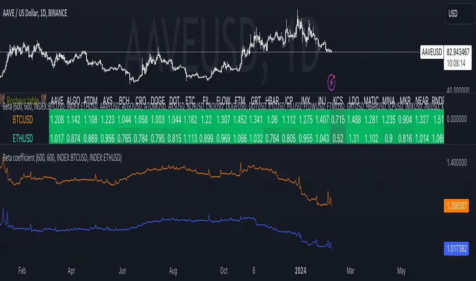 It calculates the Beta coefficient of 24 assets compared to BTC and EEF.