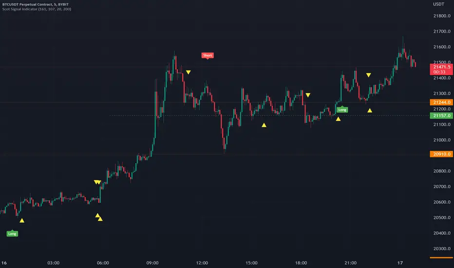 The Scot Signal Indicator is intended as a Scalping Resource. It was designed to work best on the ❗❗ 5 MINUTE CHART with Bitcoin ❗❗ / USD & USDT pairs.